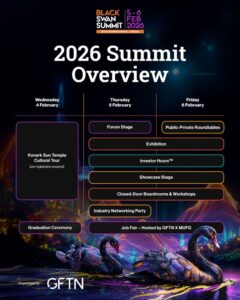 The Black Swan Summit is a global foresight platform that explores how innovation through disruption can build more resilient economies and inclusive societies. It brings together leaders in artificial intelligence (AI), quantum computing, distributed ledger technology (DLT) and green infrastructure to examine how emerging technologies are reshaping industries and redefining growth.