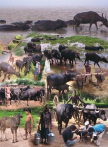 The management of Chilika buffaloes follows a distinctive community-based system rooted in local traditions. Individual farmers usually maintain small herds ranging from 10 to 60 animals. However, several households within a village often pool their buffaloes together to form larger communal herds.