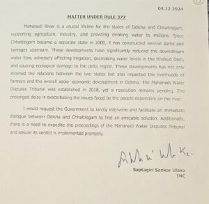 MP Saptagiri Ulaka has raised the Mahanadi Water Dispute in Lok Sabha under “Matter Under Rule 377” in Parliament. Would request Central Government to kindly intervene and facilitate dialogue between Odisha & Chhattisgarh to find an amicable solution.