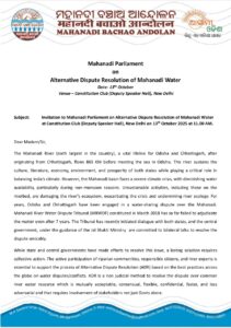 • Subject: Mahanadi Parliament on Alternative Dispute Resolution of Mahanadi Water