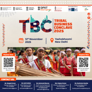 On 17th October 2025, during the National Conclave on Adi Karmayogi Abhiyan, the Ministry of Tribal Affairs, in collaboration with the Ministry of Culture and Department for Promotion of Industry and Internal Trade (DPIIT), announced the Tribal Business Conclave 2025, to be held on 12th November 2025 at Yashobhoomi, New Delhi.The event also witnessed the unveiling of the Conclave’s logo, brochure, and digital assets, symbolizing the convergence of tradition, enterprise, and innovation.