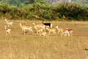 According to local legend, following the Great Famine of 1866 and a subsequent drought in 1879, thousands died in the Ghumusar region. Suddenly, hundreds of Blackbucks appeared, roaming freely. On the advice of scholars, a Yajna (sacred ritual) was organized, after which heavy rains arrived. Overjoyed, the people returned to their farming. Since then, locals believe that seeing a Blackbuck in a paddy field is auspicious, and no one harms these innocent animals. They feel their destiny is intertwined with the fate of the Blackbuck.