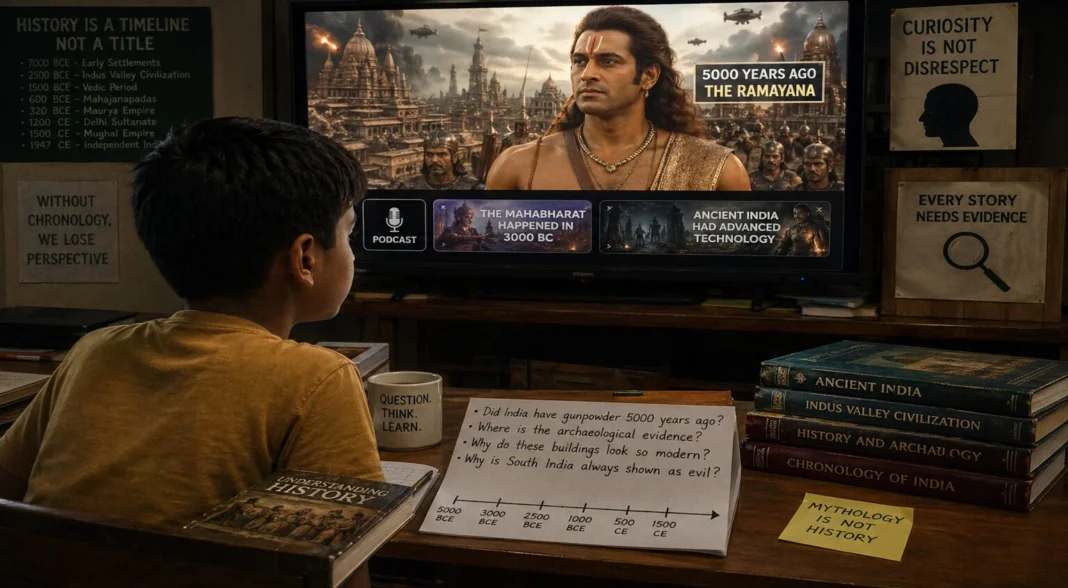 Parents must recognise that curiosity is not rebellion. It is intelligence. A child who asks, “Did India have gunpowder 5000 years ago?” is not being disrespectful. The child is thinking. The real question is: are we encouraging that thinking, or silencing it? What we are witnessing today is not just confusion between myth and history. It is a struggle over who gets to define the past. If children grow up without chronology, they will accept whatever is presented to them, whether by textbooks, films, or political rhetoric. If they grow up with curiosity, they will question all of it. And that is perhaps what truly worries those who prefer myth to masquerade as history.