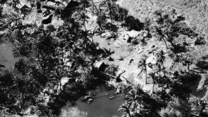 An aerial view of a rural village and the surrounding farmland almost totally devastated by one of the biggest cyclones to hit Bangladesh in recent decades. Thousands of people as well as cattle were killed and crops and houses were destroyed.